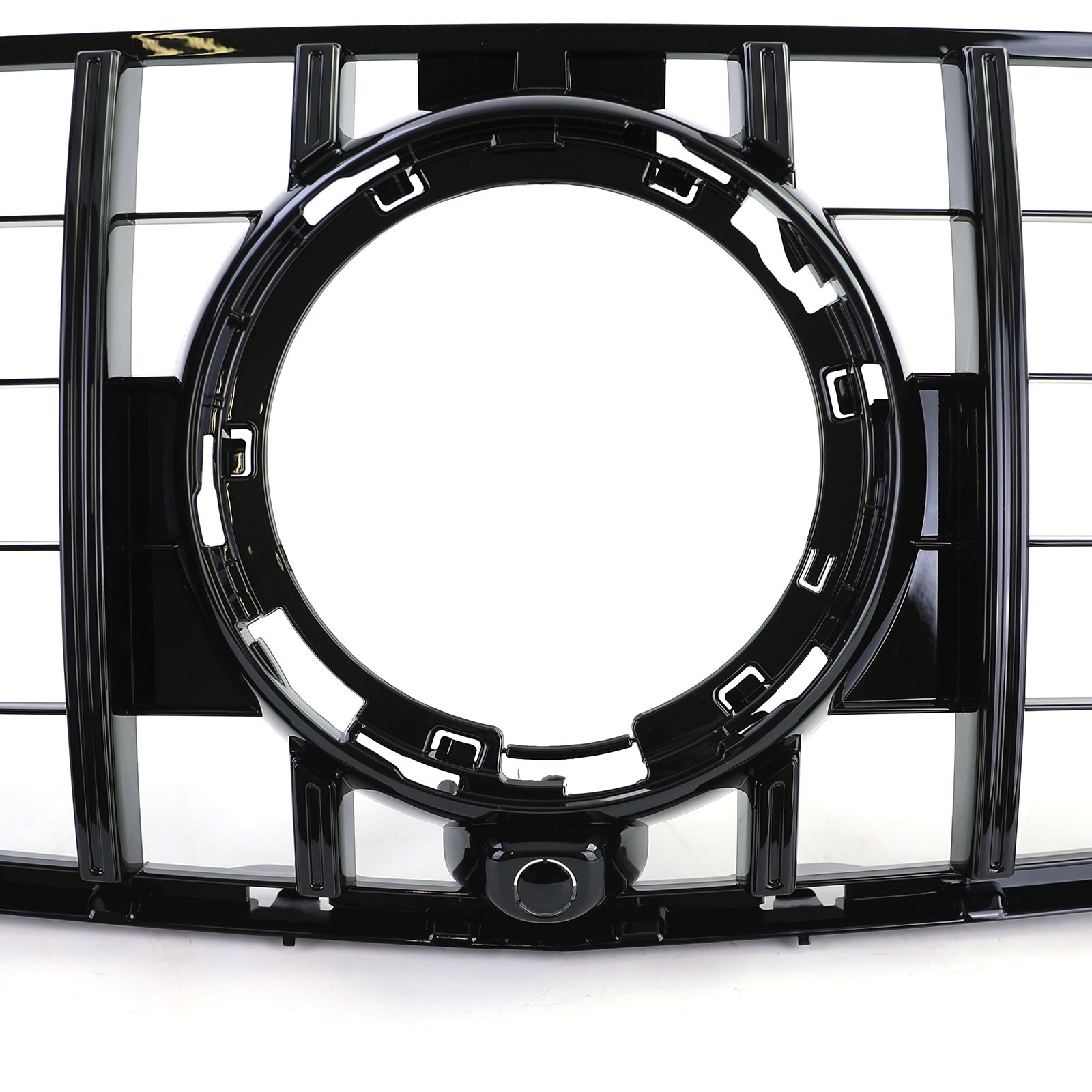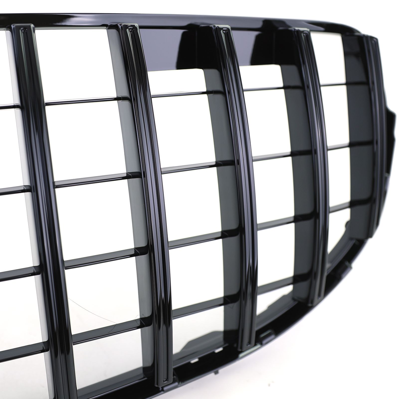 De grille is volledig uitgevoerd in glanzend zwart, wat zorgt voor een sportieve en luxe uitstraling.