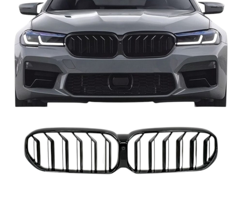 Deze hoogglans zwarte grill nieren zijn speciaal ontworpen voor de BMW 5-Serie G30 en G31 Facelift vanaf 2020 – 2023 en geven je voertuig een sportieve en moderne uitstraling.