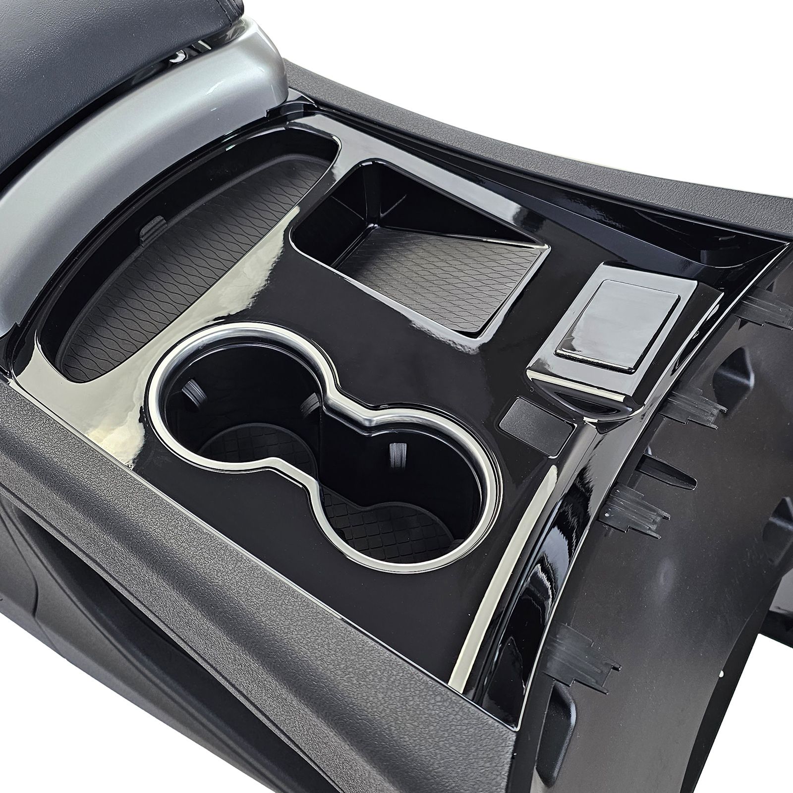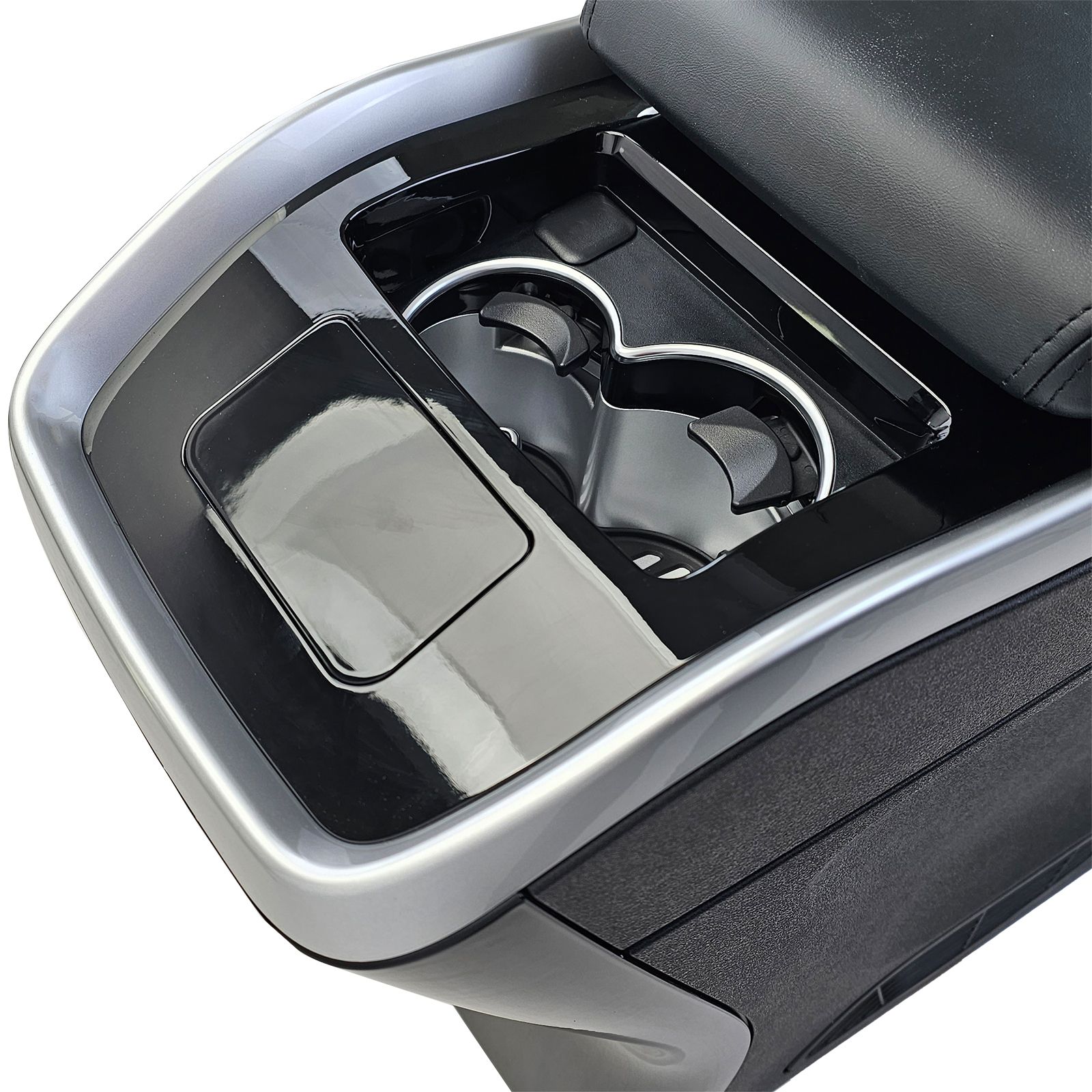 De middenconsole is vervaardigd uit hoogwaardig kunststof en afgewerkt met stijlvolle zilverkleurige details en pianozwarte accenten. Dit zorgt voor een moderne en elegante uitstraling die perfect aansluit bij het interieur van uw voertuig.